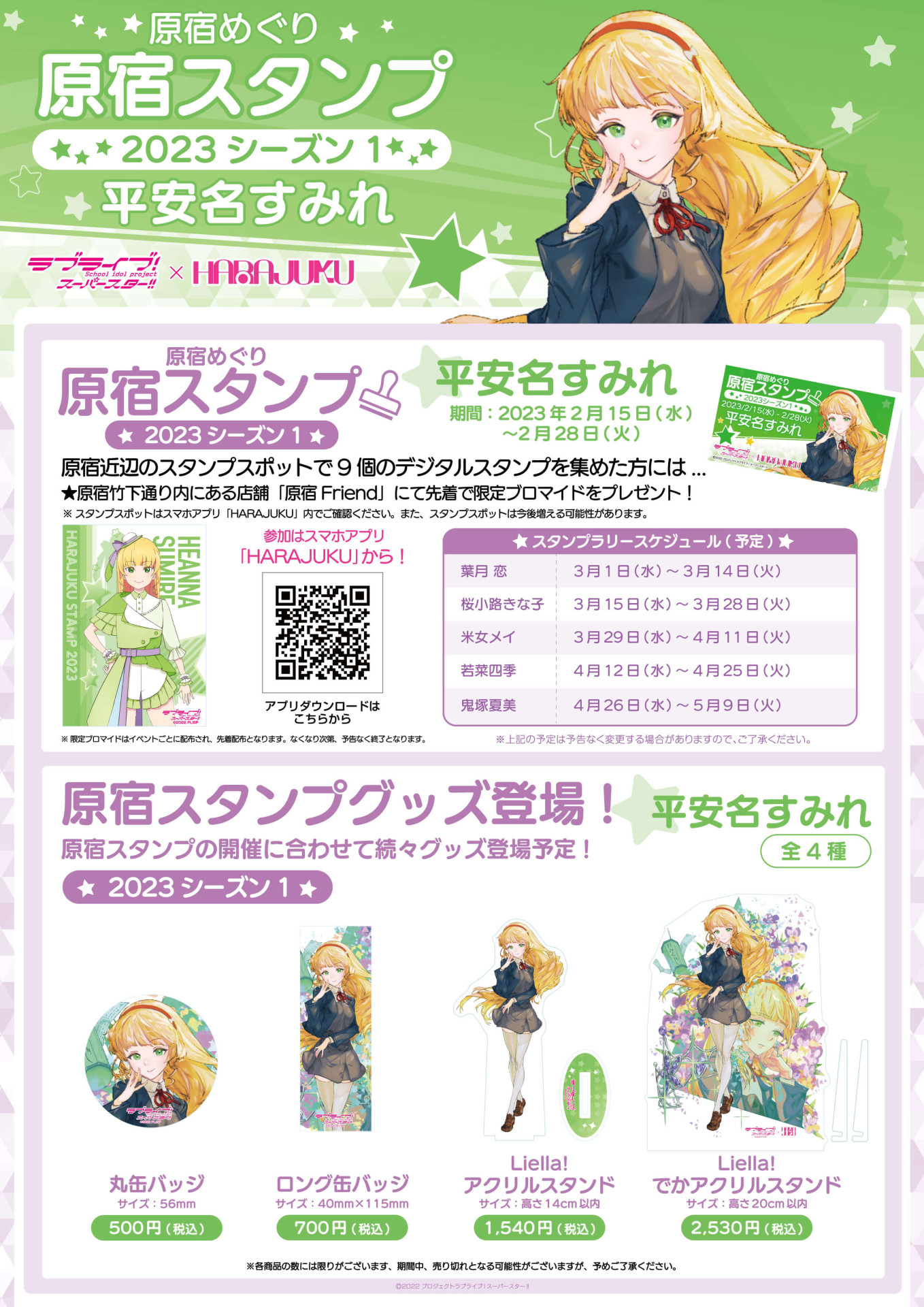 スマホアプリ「HARAJUKU」×「ラブライブ!スーパースター!!」原宿めぐり「原宿スタンプ」2023シーズン1 平安名すみれ 編のお知らせ